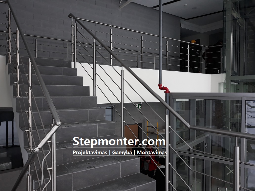 Nerūdyjančio metalo turėklai, metaliniai turėklai, laiptų turėklai- jų projektavimas, gamyba ir montavimas